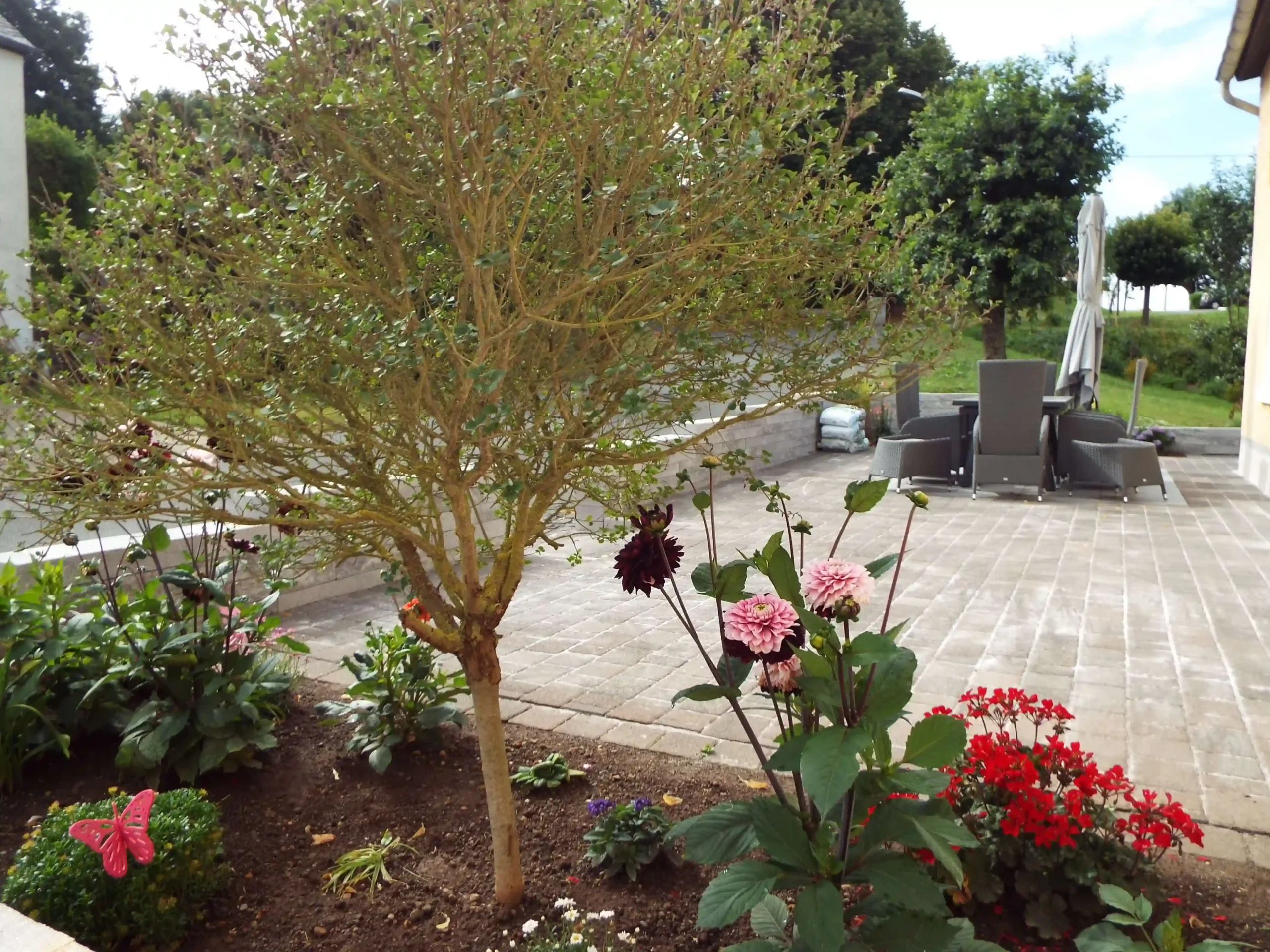 Eine liebevoll angelegte Terrasse mit großem Grill lädt zu entspannten Stunden im Freien ein – sei es beim Frühstück in der Morgensonne oder beim Grillen am lauen Abend.